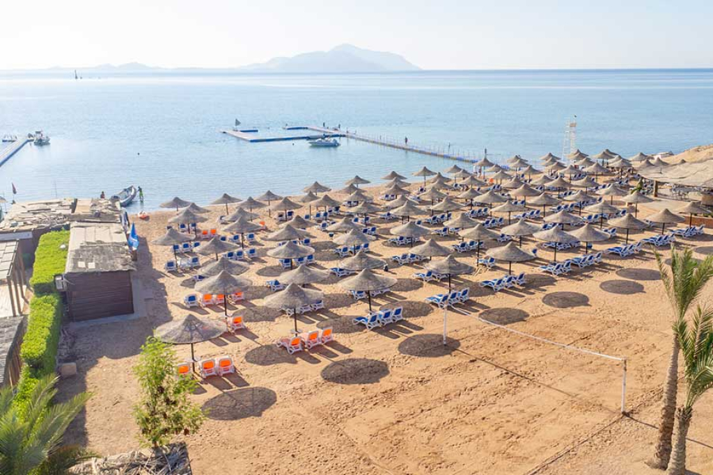 Distanza dal Mare: Il Fruit Village Sharm El Sheikh Amphoras Beach è posizionato in maniera privilegiata direttamente sul mare. A disposizione di tutti gli ospiti del complesso, un'ampia spiaggia privata di sabbia riportata e coralli, allestita con ombrelloni, sdraio e teli mare (utilizzo gratuito fino ad esaurimento) ed è provvista di pontile in legno per nuotate e snorkeling sulla barriera corallina.